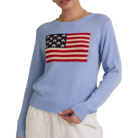 Großhandel Custom 100% Baumwolle Soft Women Strick pullover USA Flagge Intarsia Pullover Winter Frühling Chunky Strickwaren Hochwertige OEM